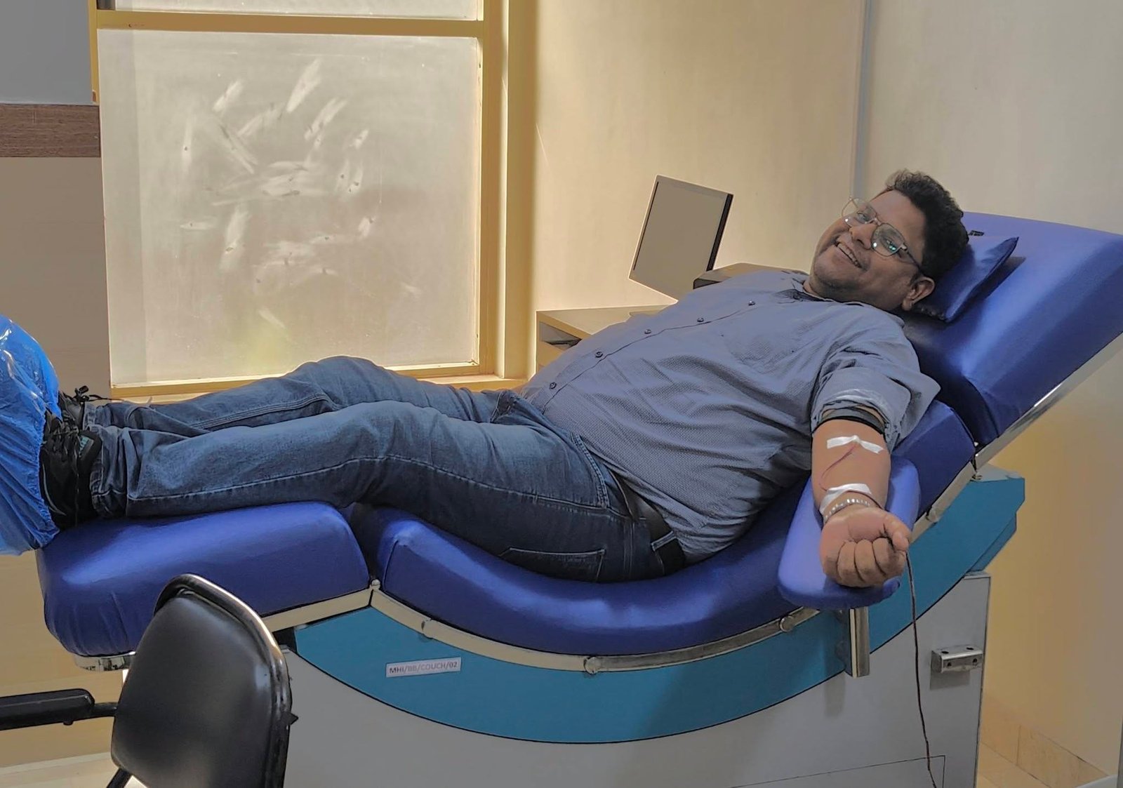 मानवता की मिसाल करते हुए नेफोमा सदस्य आशीष बंसल ने 55 वा किया रक्तदान ।